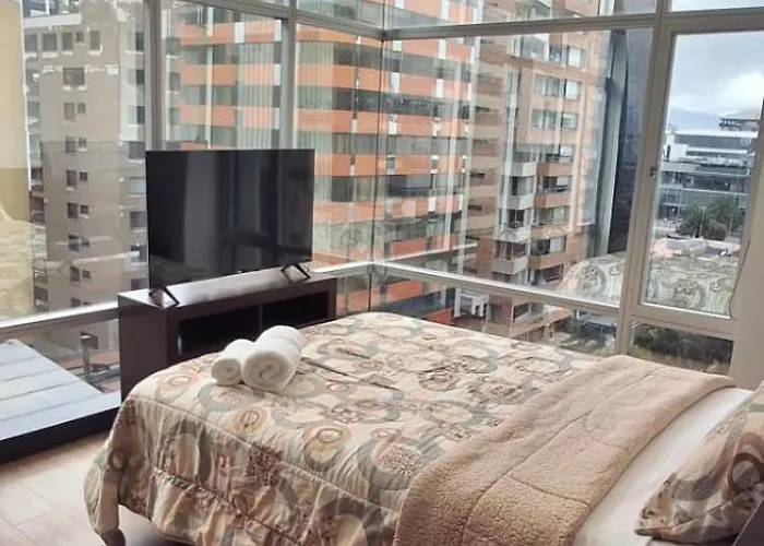 Oferecendo restaurante, o hotel Penthouse Lujo, Parque La Carolina, Piscina, Parqueo 3 Habitaciones Quito de 3 estrelas situa-se no bairro La Carolina em Quito, a uma distância de 6 km de Catedral de Quito e a aproximadamente 25 minutos a pé do Mirador De Guapulo. Situado a alguns passos de Bulevar Naciones Unidas, este apart-hotel de Quito oferece piscina em ambiente fechado com sauna e sinuca para o aproveitamento dos hóspedes.
